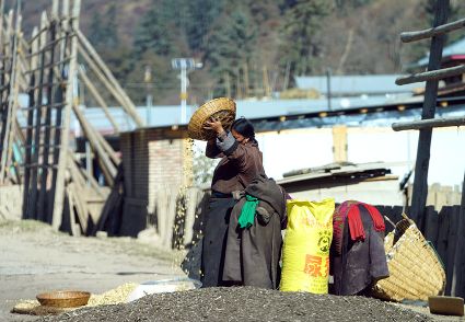 我想,擁有了清新質(zhì)樸的鄉(xiāng)野日子,就可以靜下心來。而事實(shí)上還是無法安下心來,一面想著山林的神秘,一面想著城市的熱鬧。寂寞無聲地穿過巷道,那個(gè)向陰的小二樓一如既往地昏暗。拉開麻布的窗簾,大多時(shí)候我會看見走在巷道里的老老少少、男男女女,他們背著柴禾,滿帶笑容,相互致意。他們的日子似乎充滿了無盡的樂趣,也充滿了幸福和陽光。上午十點(diǎn)的時(shí)候,陽光會滑過窗臺,轉(zhuǎn)瞬即逝,但陽光的確向小二樓袒露了它的無能為力。另一張桌子擺放著廚具,廚具上每天都會有新的灰塵堆積,盡管如此,它們依然發(fā)出青稞的馥郁之氣。