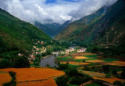 丹巴藏寨是嘉絨藏寨中最具特色的。尤以甲居、聶呷、革什扎和巴底鄉(xiāng)最為突出,冰川雪線之下,村落散布,一幢幢民居依山就勢、錯落有致地融于自然環(huán)境中,體現(xiàn)了天人合一的理念。遠遠看去,充滿靈氣的山谷中,翡翠般的青草綠樹之中,是那沉甸甸的田地和隱在密林深處的寨房,伴著潺潺溪流,一幅富有動感的絕妙山寨畫卷隨之展示在你的眼前。