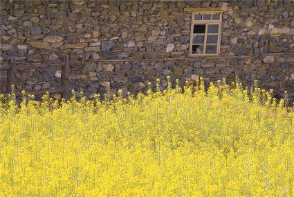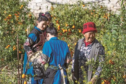 不遠(yuǎn)處,農(nóng)家大哥左握微型秤,旁邊框框紅艷艷草莓待稱,右拿手機(jī)收付款。穿過溪流木橋,黃四娘家青果累累,爍爍梨花下,女兒正梳妝挽云鬢;沈家河壩菜花黃黃,別院人聲鼎沸。遙想當(dāng)年,坡陡路險。而今,鄉(xiāng)村振興,片片梯田,阡陌交通,戶戶通路。雨天一身泥,晴天一身灰已不復(fù)返。