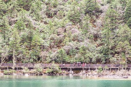 到過木格措的人,望著美麗的景色,不由得想起朱自清的《春》,“春天像小姑娘,花枝招展,笑著走著”,“春天像剛落地的娃娃,從頭到腳都是新的,它生長(zhǎng)著”。木格措就是這個(gè)“春天”,總是露出嶄新俏麗的容顏,到處都是新的,不是仙境,勝似仙境,與世界隔緣。