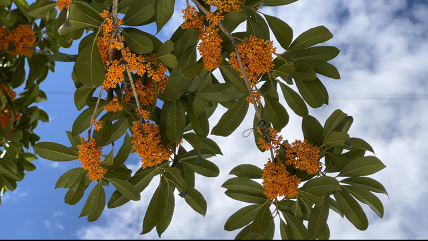 無(wú)間纏綿的秋雨后,漫步在巴塘的街道,悠悠的一股香氣沁入心扉。此時(shí),頭頂?shù)乃{(lán)天,云卷云舒,嬌小的丹桂掛在樹(shù)梢枝頭輕輕搖曳,花香詩(shī)意相融于高原江南別有意趣。