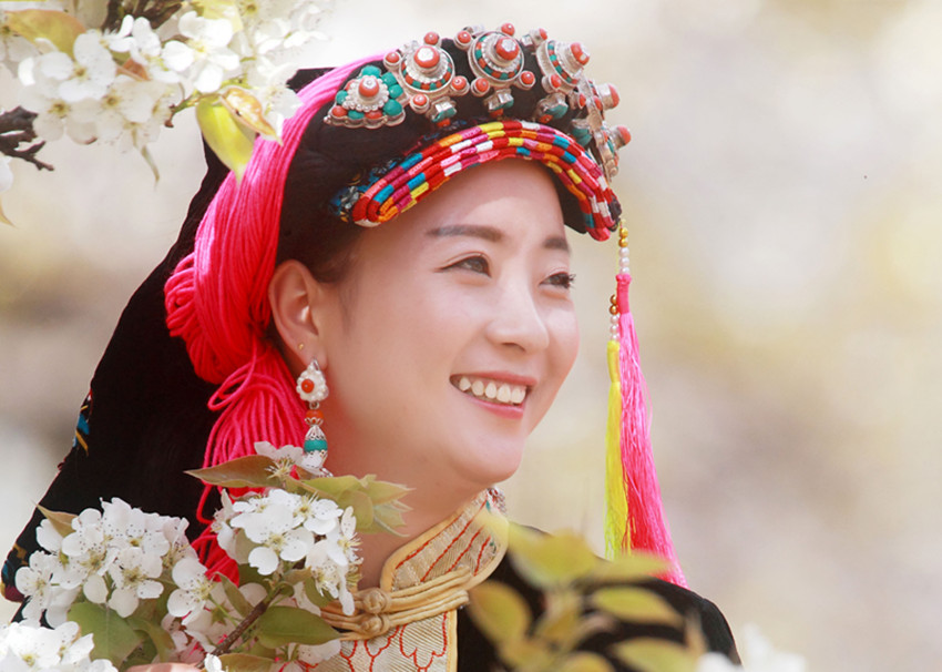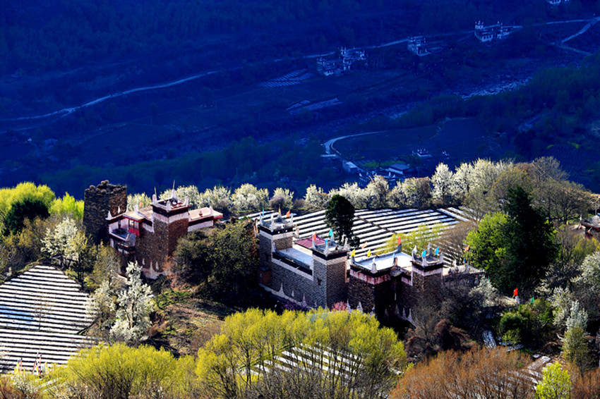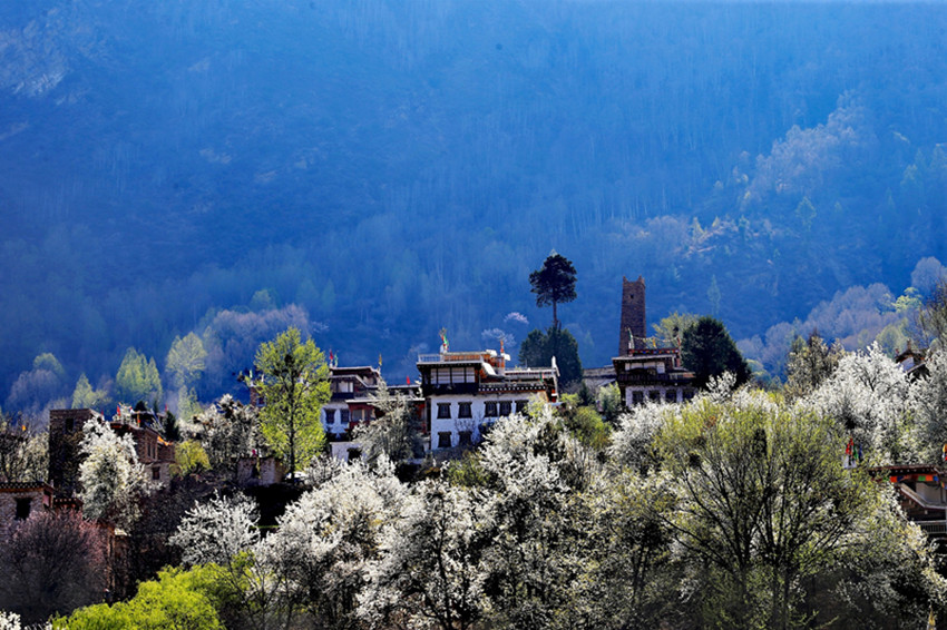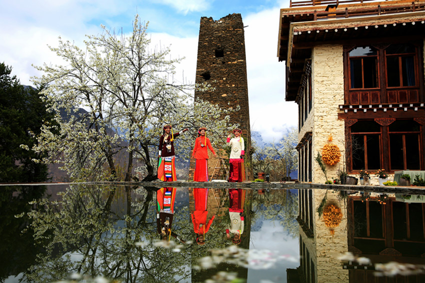 雪山、碉樓、藏寨、美人共同勾勒出一幅精美絕倫的春日藏寨梨花圖。春日里的梨花造就了丹巴的“三絕”?!耙唤^”即梨花配藏寨;“二絕”即梨花配碉樓;“三絕”即梨花配美人。