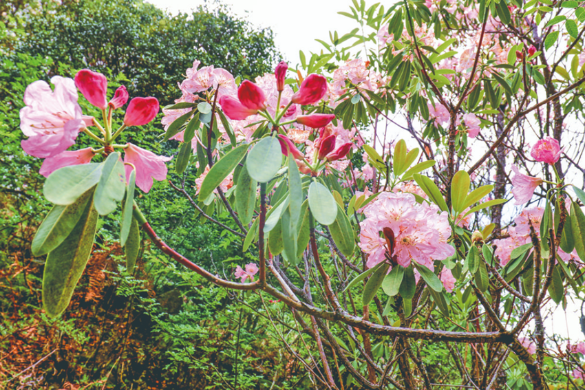 九龍縣被稱為高山杜鵑的故鄉(xiāng)。每年5月,九龍春光明媚,花潮涌動(dòng),漫山遍野各色花兒爭(zhēng)奇斗艷,然而杜鵑花在其中最為耀眼奪目。杜鵑萬(wàn)紫千紅,匯集在一起,深淺濃淡,開得爛漫又無(wú)所拘束,在嫩葉的襯托下美不勝收。
