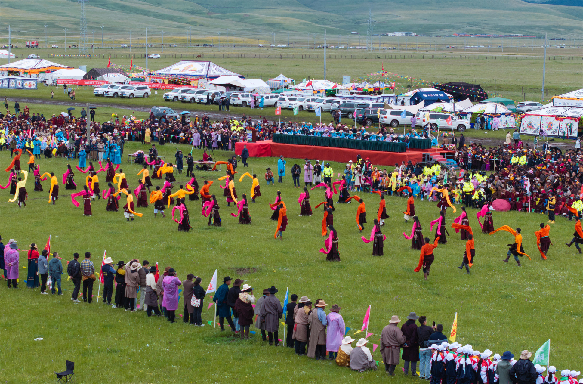 7月27日,四川省甘孜藏族自治州白玉縣第二屆“盛德白玉·草原最?!编l(xiāng)村民俗文化活動(dòng)在阿察鎮(zhèn)日通草原啟幕。文藝匯演、牦牛選美、擠奶比賽、賽馬等活動(dòng)在接下來兩天里將輪番上演,吸引當(dāng)?shù)啬撩窈捅姸嘤慰颓皝碛^賞。