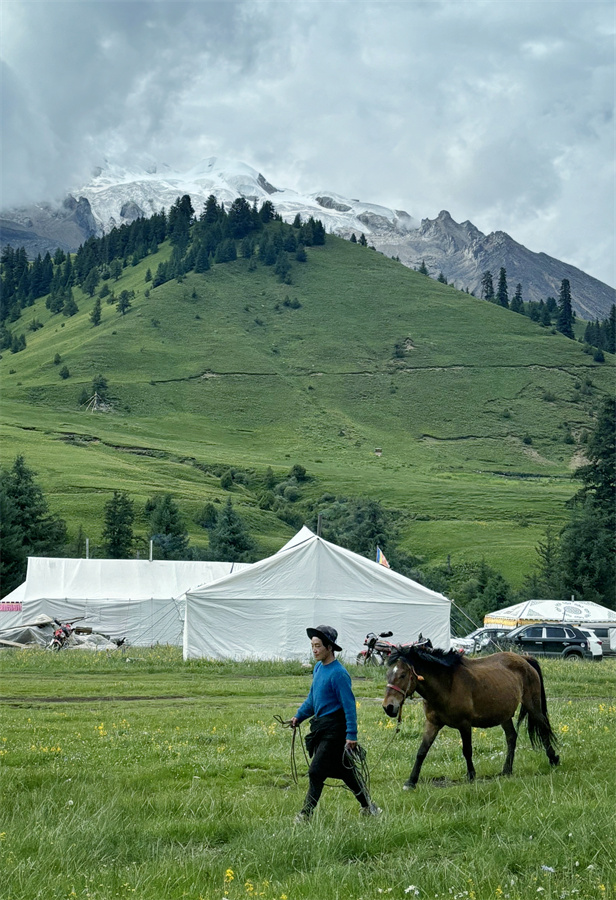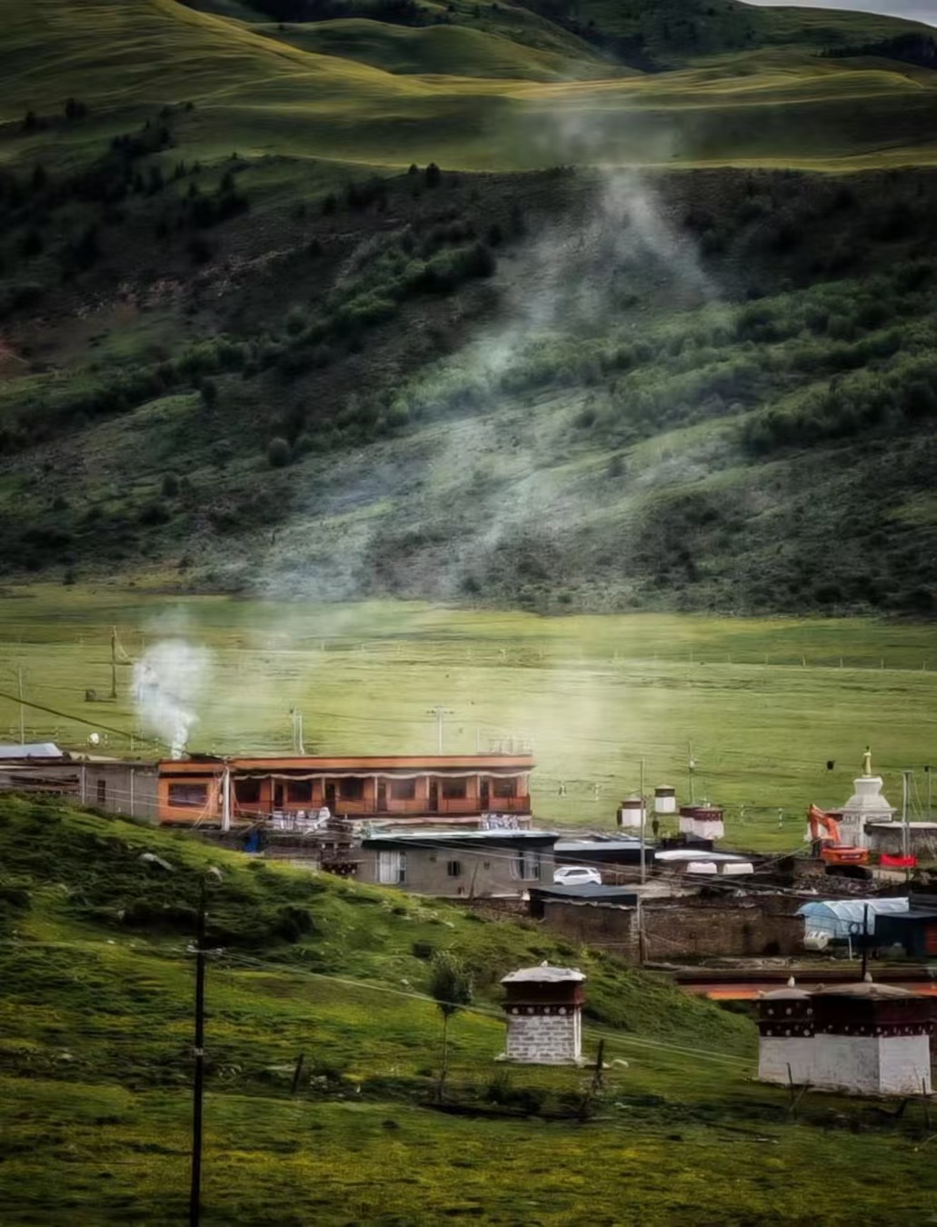 然日卡村是格聶山下一個典型的藏族村莊,因自然景觀優(yōu)美而聞名。站在村前觀景平臺上,能看到以雄奇險峻而著稱的格聶神山。格聶神山位于理塘縣西南部,是四川省甘孜藏族自治州理塘縣境內(nèi)的著名山脈,?它不僅是四川第三高峰,?而且因其獨特的自然景觀和深厚的文化背景,?吸引了眾多旅行者和朝圣者。?格聶神山的地質構造和自然景觀極為豐富,?包括冰川、?雪峰、?草原、?沼澤、?瀑布等,?展現(xiàn)了大自然的鬼斧神工和生命的多樣性。?