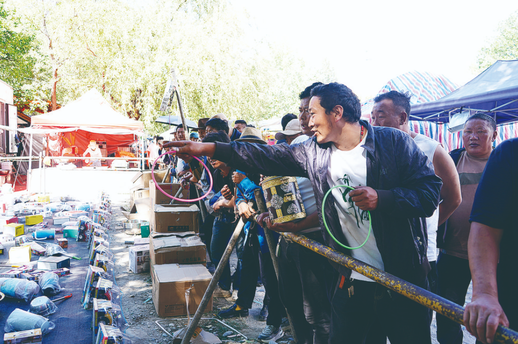 和益西有相同想法的群眾不在少數(shù),每年藏歷八月初,巴塘群眾都會齊聚在夏邛鎮(zhèn)龍王塘,用各式各樣的帳篷裝飾草地,傳統(tǒng)非遺藏戲和歡快弦子點燃了節(jié)日氛圍,燒烤攤、小賣鋪、藏餐館俘獲四方游人味蕾,“央勒節(jié)”讓幸福在此刻具象化。
