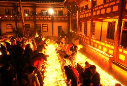 傳說藏歷十月二十五日,是藏傳佛教格魯巴(俗稱黃教)創(chuàng)始人宗喀巴大師圓寂成佛的日子。為了紀(jì)念這位杰出的宗教領(lǐng)袖,藏區(qū)各黃教寺廟和信徒于藏歷十月二十五日,舉行誦經(jīng)、磕頭,燈供儀式等隆重的祭祀活動(dòng),祭祀宗喀巴大師在天之靈和祈愿大師賜與善良的人們以吉祥幸福。