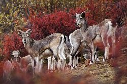 巖羊(學(xué)名:Pseudois nayaur),體型中等,形態(tài)介于野山羊與野綿羊之間。兩性具角,雄羊角粗大似牛角,但僅微向下后上方彎曲。以青草和各種灌叢枝葉為食。冬季啃食枯草。它們還常到固定的地點(diǎn)飲水,但到寒冷季節(jié)也可舔食冰雪。無固定獸徑和棲息場所。它們在懸崖峭壁只要有一腳之棱,便能攀登上去。一跳可達(dá)2、3米,若從高處向下更能縱身一躍10多米而不致摔傷。冬季發(fā)情交配,次年6、7月產(chǎn)仔,每年通常只產(chǎn)1仔。主要天敵是雪豹、豺、狼,以及禿鷲和金雕等大型猛禽。中國國家二級重點(diǎn)保護(hù)野生動物?! ?br />