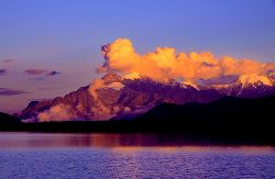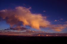 云在天上飄動(dòng),影子在大地上掠過(guò),碧綠的草地在云流的映襯下五彩斑斕,猶如一塊巨大的迷彩布,把草地打扮得分外妖嬈。云不墨守成規(guī),每時(shí)每刻都有新創(chuàng)意;云有層次的美,有型有款。時(shí)刻花樣百出、千奇萬(wàn)巧的云景,常使人遐想聯(lián)翩。我愛高原的云,因?yàn)橐嗾嬉嗷玫脑品路鸪闪诵撵`遠(yuǎn)游的載體,寄托著人們的留戀與追求。