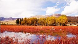 蔚藍(lán)蔚藍(lán)的天空飄著幾朵淡淡的白云,天空是那么近,仿佛你伸手可觸。一出縣城,你可以看到世界上海拔最高、面積最大的人造青楊林,這兒的海拔是三千七百多米,農(nóng)業(yè)學(xué)家認(rèn)為海拔4000米是不能生長(zhǎng)農(nóng)作物的,可是這里照樣是郁郁蔥蔥,到處是風(fēng)里閃爍的青楊樹(shù),映著灘寬水淺的小河,炊煙裊裊的藏房,潔白豐滿(mǎn)的佛塔,還有色拉村的晨霧,好一派迷人的美景……