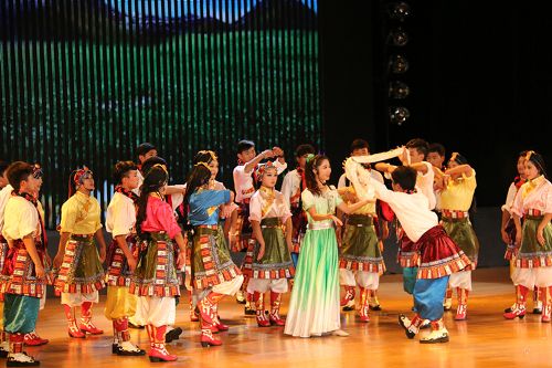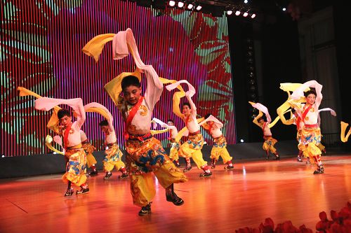 在歡快的音樂(lè)聲中,《師恩如歌》拉開(kāi)了“園丁頌”文藝晚會(huì)的序幕。悠揚(yáng)的歌聲,歡快的舞蹈,熱烈的掌聲,演繹著同一個(gè)主旋律:“老師,是您為我們開(kāi)啟了智慧的大門(mén),加減乘除,算不盡您做出的貢獻(xiàn)!詩(shī)詞歌賦,頌不完對(duì)您的感激!千言萬(wàn)語(yǔ)只能匯成一句話:老師,您辛苦了,我們永遠(yuǎn)感謝您!”晚會(huì)以“園丁頌”為主題,分為“播種希望”、“愛(ài)的光芒”、“九月禮贊”三個(gè)篇章。歌曲《圓夢(mèng)中國(guó)》、情景劇《守望白云》、舞蹈《老師親,媽媽親》等13個(gè)節(jié)目先后上演。一首首膾炙人口的歌曲,唱出了對(duì)人民教師的無(wú)限深情,一個(gè)個(gè)激情昂揚(yáng)的舞蹈,道出了對(duì)人民教師的萬(wàn)般感激。旋律優(yōu)美、歡快熱烈、精彩紛呈的晚會(huì)深深地吸引了現(xiàn)場(chǎng)觀眾的眼球。一聲聲發(fā)自?xún)?nèi)心的問(wèn)候,一句句來(lái)自心靈的祝福,將晚會(huì)一次次推向高潮,晚會(huì)現(xiàn)場(chǎng)掌聲雷動(dòng)、歡呼雀躍,《吉祥祝?!犯栉璞硌轂檎_(tái)晚會(huì)畫(huà)上了一個(gè)圓滿(mǎn)的句號(hào)。