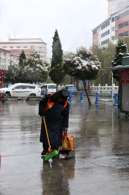 交警在忙碌,然而,我們的環(huán)衛(wèi)工也沒(méi)有歇著,無(wú)論是將軍橋、康定賓館、彩虹橋、下橋還是東關(guān)、北門(mén),都有環(huán)衛(wèi)工人們的身影,他們不停的為這座美麗的城市清潔,讓人們感受到舒適空氣和美景。
