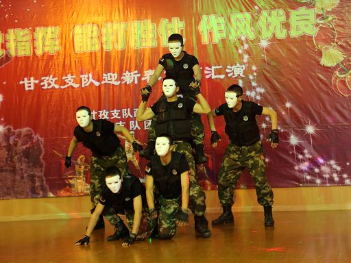 高亢的軍歌、奔放的舞蹈、幽默的小品,一個(gè)個(gè)精彩的節(jié)目,一曲曲動(dòng)人的旋律,一陣陣熱烈的掌聲,警營里充滿了歡聲笑語,蕩漾著濃濃暖意。