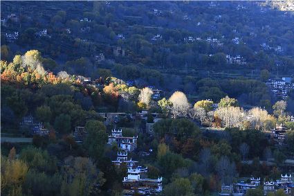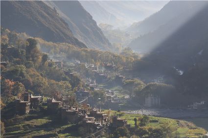 落日將最后一道霞光在山尖劃過(guò),暗夜便裹挾這寒意搖動(dòng)起山林中的樹(shù)木。風(fēng)漸緊,那已經(jīng)稀稀落落的樹(shù)葉隨著風(fēng)的韻律,跳起歡快的鍋莊,仿佛在告別這一年的繁華。突如其來(lái)的大雪,給丹巴的二月涂上白色的記號(hào)。從山尖到院前的樹(shù)上,一溜兒雪白,正應(yīng)了“忽如一夜春風(fēng)來(lái),千樹(shù)萬(wàn)樹(shù)梨花開(kāi)”的情景,讓人忍不住伸出手指看看這花是真是假。大雪過(guò)后,陽(yáng)光如約而至撒滿(mǎn)藏寨,金色陽(yáng)光和蒸騰的白霧縈繞在雪白的山頭,與山下的古碉藏寨,河畔的清流巧妙地構(gòu)成一幅絕美畫(huà)卷,讓人仿佛身處仙境。吸足了養(yǎng)分的柳樹(shù)終于抽出綠芽送來(lái)春天的信號(hào),那柳條兒在細(xì)風(fēng)吹拂下宛如少女對(duì)鏡梳妝,在陽(yáng)光下顯得無(wú)比溫柔,讓人不禁想貼近它們,感受這溫暖又靜謐的溫柔。