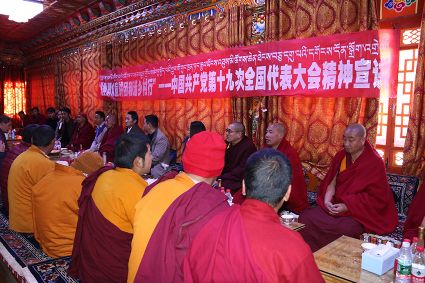 宣講團(tuán)成員勇勇用藏語激情洋溢的宣講黨的十九大精神,現(xiàn)場不斷響起熱烈的掌聲。當(dāng)勇勇講到我國五年來取得的輝煌成就時(shí),僧人們都激動不已,紛紛為發(fā)展成就點(diǎn)贊。“聽了今天的宣講,我進(jìn)一步了解到了我們國家這些年來取得的發(fā)展成就。一直以來,黨對我們的關(guān)懷是看得見摸得著的,現(xiàn)在我們的寺廟管理越來越規(guī)范,基礎(chǔ)設(shè)施也得到了完善,通往寺廟的道路也有了明顯改善,我們的生活越來越好了,這一切都是共產(chǎn)黨的功勞?!彼聫R僧人尺乃表達(dá)著對黨的感恩。