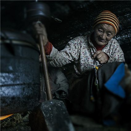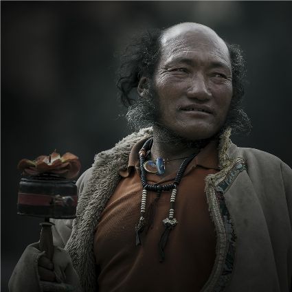 每當(dāng)我手持相機(jī)時(shí),對(duì)他們始終懷有一種敬畏,我捕捉到他們眼神里流露出虔誠??粗?jīng)筒上“甲多”的飛轉(zhuǎn),我陶醉了,醉在那轉(zhuǎn)經(jīng)筒的旋轉(zhuǎn)舞動(dòng),醉在那轉(zhuǎn)經(jīng)筒傳誦的故事,醉在那一張張手持轉(zhuǎn)經(jīng)筒的面孔,還有,還有因祈禱音符助推而從未停止的轉(zhuǎn)經(jīng)筒……