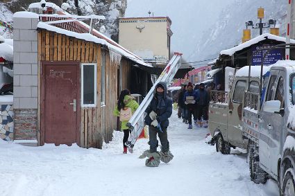 “風(fēng)雨送春歸,飛雪迎春到。已是懸崖百丈冰,猶有花枝俏?!?月4日傍晚,大片大片的雪花,從昏暗的天空中紛紛揚(yáng)揚(yáng)飄落下來。霎時(shí)間,山川、河流、城市,全都籠罩在白蒙蒙的大雪之中。黃昏的雪,下得深切切的,好象有千絲萬縷的情緒似的,又像海水一般洶涌,能夠淹沒一切,還有一絲揭開藏頭露尾般的裸露感。雪花形態(tài)萬千、晶瑩透亮,好象出征的戰(zhàn)士,披著銀色的盔甲,又像是一片片白色的戰(zhàn)帆在遠(yuǎn)航…… 落光了葉子的柳樹上,掛滿了毛茸茸、亮晶晶的銀條兒;冬夏常青的松樹和柏樹,堆滿了蓬松松、沉甸甸的雪球。那一片雪花在空中舞動(dòng)著各種姿勢(shì),或飛翔,或盤旋,或直直地快速墜落,鋪落在地上?!昂鋈缫灰勾猴L(fēng)來,千樹萬樹梨花開”——這是雪的燦爛;一場(chǎng)瑞雪,扮美了康定,年味籠罩的康定城,嫵媚妖嬈。無論是背水姑娘、有著年味兒的將軍橋,還是大紅燈籠高高掛的康定門,都在雪后別有一番景致。與美景合影、和朋友玩雪都是最佳選擇。在風(fēng)雪中,交警不畏嚴(yán)寒默默堅(jiān)守崗位 ,指揮交通疏堵保暢。他們的身影在皚皚風(fēng)雪路上站成一道道最美的風(fēng)景,溫暖了康定。從早上六點(diǎn)開始,康定的環(huán)衛(wèi)工就迎著刺骨的寒風(fēng),開始了除冰雪保通暢的行動(dòng),在積雪覆蓋的康定城,早起的商販樂呵呵地做起了買賣;民工迎著雪后的寒風(fēng)出門務(wù)工,他們是最可敬的人。