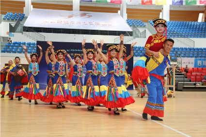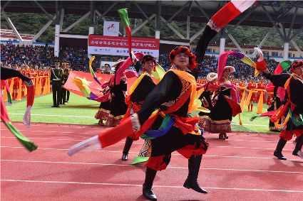“本屆少數(shù)民族傳統(tǒng)體育運動會的會徽以格薩爾王賽馬登位為基本形象,由字母‘SC’組成的騎手代表‘四川’,數(shù)字‘15’組成了昂揚奔騰的‘馬’為主體的形象,代表‘15屆民運會’。這既有藏民族特色,又顯得美觀大方?!痹陂_幕式現(xiàn)場,來自杭州的陳琳興致勃勃地說。