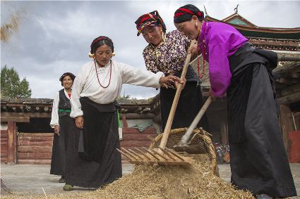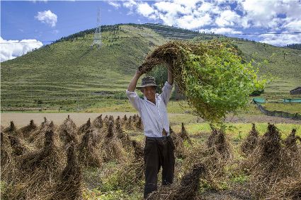 康定市姑咱鎮(zhèn)達(dá)杠村村民李翠軍一邊采摘著蘋果,一邊喜悅地告訴記者,達(dá)杠所產(chǎn)的蘋果個頭大、色澤好、吃味好、耐儲藏,到目前,全村蘋果種植面積800多畝,去年蘋果產(chǎn)量160萬斤,今年雨水好,蘋果產(chǎn)量將猛增到200萬斤以上。目前,村子里蘋果種植大戶家庭年收入過10萬元的就有20多戶??刀ㄊ袑⑦_(dá)杠村打造成川藏觀光農(nóng)業(yè)第一村。按照規(guī)劃,村里會進一步擴大蘋果種植面積,以蘋果利用為核心,發(fā)展“春賞花、夏攝影、秋摘果、冬體驗”四季觀光農(nóng)業(yè)產(chǎn)業(yè)。五谷豐登六畜興旺,甘孜高原共慶豐收。農(nóng)民豐收節(jié),它既是億萬農(nóng)民慶豐收、曬豐收的節(jié)日,也是全社會享豐收、助增收的節(jié)日;既寄托著農(nóng)民的追求、農(nóng)民的希冀,也承載著全體中華兒女的深情與追憶;中國農(nóng)民豐收節(jié),農(nóng)牧民收獲的不只是甜蜜蜜的果實,鼓起的不只是沉甸甸的荷包,更是滿滿的榮譽感、幸福感、獲得感!