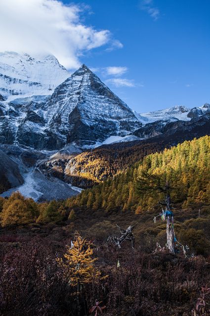 十月的稻城亞丁,秋高氣爽,空氣里漸漸彌漫著涼意,雪山在藍(lán)天白云的襯托下更顯圣潔,碧綠的水色在天空的映射下一來,發(fā)著幽幽的光芒,碧波蕩漾、粼粼波光中透出無限清麗,澄澈的牛奶海、彩林環(huán)繞下的珍珠海、奇幻色彩的五色海,湖水清瑩碧藍(lán)、玲瓏秀雅而惹人憐愛,到了秋意漸濃的時(shí)刻,翠藍(lán)與金黃相映成趣,倒影著五彩斑斕的世界,令人目眩神迷。在這美好的金秋時(shí)節(jié),來到稻城,你會甘愿將胸膛與大地貼近,把靈魂與天空相融。你可以輕易的把自己的心情釋放在這片草原、湖泊、森林、雪山之中,盡情陶醉。