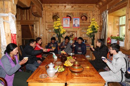 走進巨龍鄉(xiāng)然央村,傳統(tǒng)藏房依山而建,巨龍河水悄悄流過。曾經(jīng)泥濘的土路變成平整的水泥路,藏寨房前、鄉(xiāng)間路邊種滿了鮮花,呈現(xiàn)出嶄新的藏家田園風光。近年來,然央村按照全域旅游帶動全面發(fā)展的要求,鋪設入戶道路、改善村民居住環(huán)境、建設旅游設施、開展風貌打造、推廣大棚蔬菜種植和家畜圈養(yǎng),真正讓群眾住上了好房子,過上了好日子。