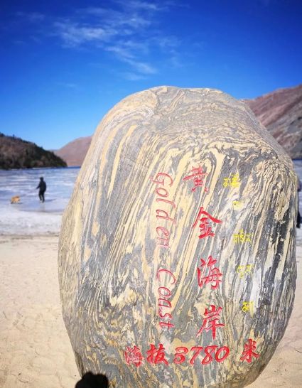 在木格措(野人海)的左邊就是被譽(yù)為“愛情灘”的黃金沙灘,很多有情人在這里許下愛情的誓言,草木生靈都作為見證。圍繞海子自然形成的沙灘在高原是很罕見的,當(dāng)春天來臨,冰面漸漸舒展開,浪花也席卷而來,在黃金海岸,你可以逐浪玩沙。