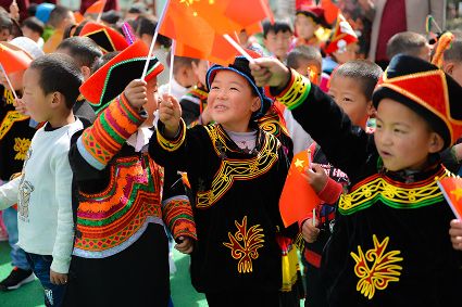 “六一”前夕,我肩挎相機(jī)走進(jìn)了熱鬧非凡的九龍縣二幼,他們正在舉行“我們在一起”文藝活動?;顒右婚_始,幾個四五歲的小小升旗手,身著民族服裝在老師的口令下莊重地走上旗臺,在激昂的國歌聲中,國旗在他們手中冉冉升起,全場行注目禮。這場景令我感動不已,國家強(qiáng)盛,人民安康,孩子們在溫暖的陽光下茁壯成長。