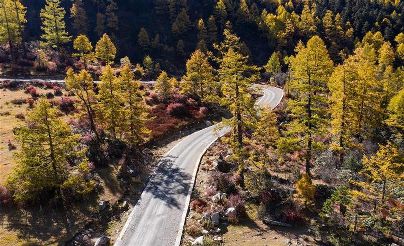 深秋時節(jié),晴空、群山、秋葉在高原清澈的天光下勾勒出川西鄉(xiāng)城縣一幅幅美麗畫卷。