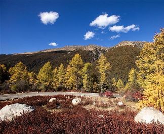 上一圖集:秋色與藍天相映 明珠與雪山成趣