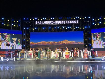 11月21日晚,康巴美人模特秀暨海螺溝冰川溫泉狂歡夜在神湯溫泉中心火熱上演,50名有著“東方美人”美譽(yù)的康巴姑娘和有著“格薩爾王”體魄的康巴漢子伴著原生態(tài)牧歌依次登臺(tái)亮相,率先開啟溫泉T臺(tái)服飾展演大幕。隨后,《Fashion Girl》、ViVi時(shí)尚舞團(tuán)、《甘孜踢踏舞》、魔方搖滾樂團(tuán)、《康定情歌》······中西合璧、形式多樣、精彩紛呈的節(jié)目陸續(xù)上演,“最炫民族風(fēng)”的演出燥熱夢幻舞臺(tái),“冰與火”的狂歡夜深受廣大現(xiàn)場觀眾的喜愛。圖為活動(dòng)現(xiàn)場。