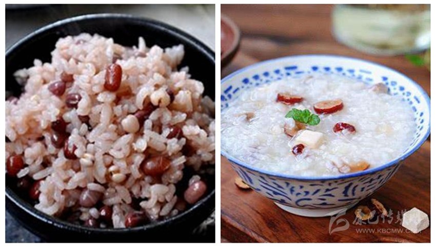 制作方法:赤小豆和薏苡仁洗凈后,提前浸泡3h,然后和粳米一起放入蒸鍋中蒸熟成米飯,隨餐當(dāng)主食食用。