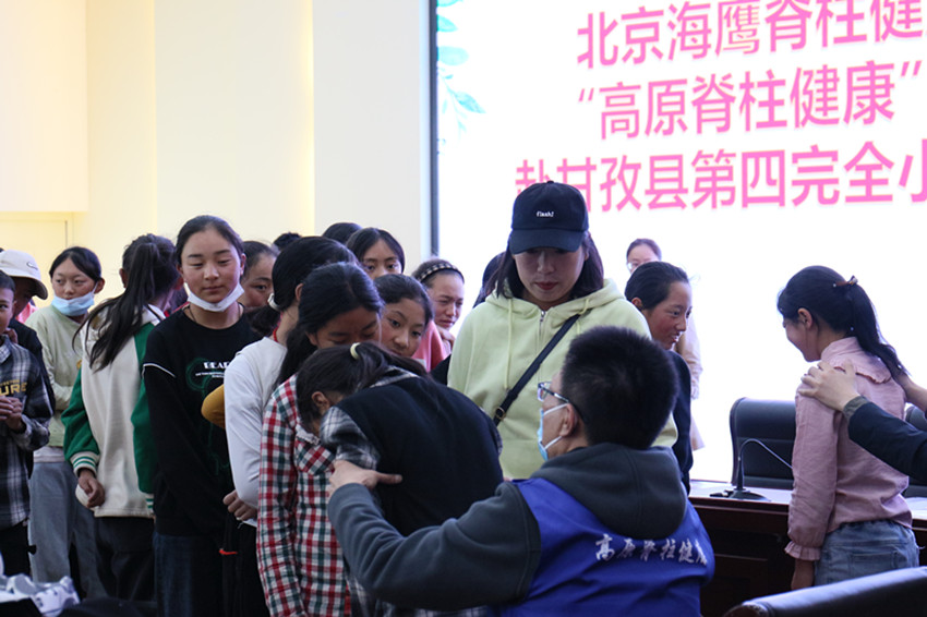 日前,北京海鷹脊柱健康公益基金會“高原脊柱健康”醫(yī)療專家團隊到甘孜縣小學(xué),為孩子們逐個進(jìn)行脊柱篩查和診斷,其中有31名輕微脊柱側(cè)彎的學(xué)生、5名重度脊椎側(cè)彎患者納入赴京手術(shù)名單。圖為醫(yī)護人員正在篩查。 甘宣 攝影報道