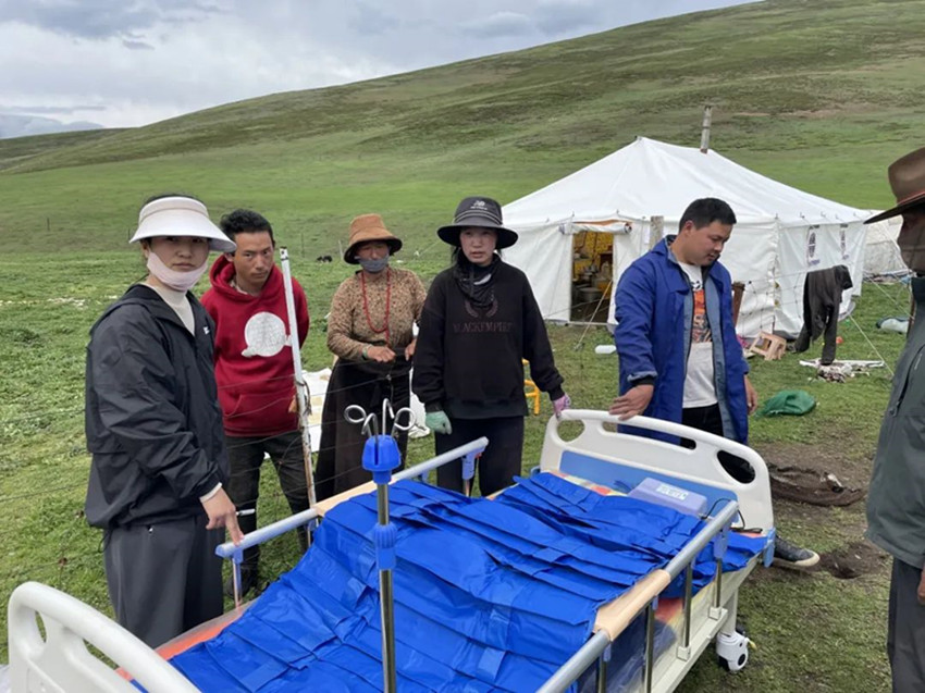 圖為工作人員講解護(hù)理床的安裝、拆卸等操作。