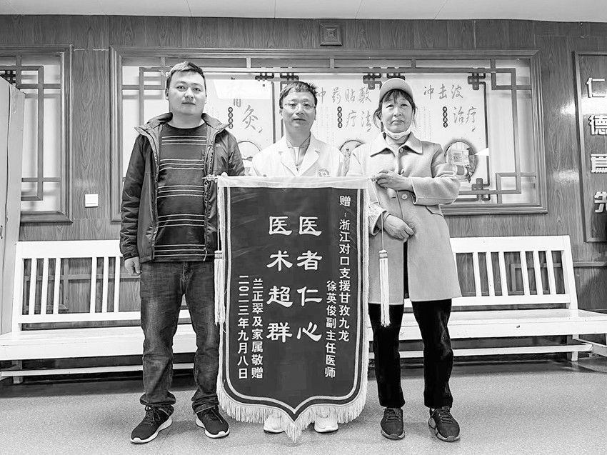 本網(wǎng)訊 “一面錦旗不足以代表我們?nèi)业母兄x,感謝您把我的頑疾解決了,現(xiàn)在生活恢復(fù)了正常!”近日,家住九龍縣魁多鎮(zhèn)的蘭大姐專程來到九龍縣人民醫(yī)院,將一面“醫(yī)者仁心 醫(yī)術(shù)超群”的錦旗送到杭州對口支援醫(yī)師徐英俊的手中。