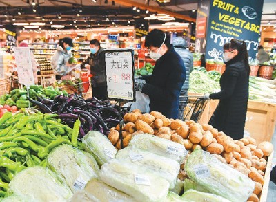 在吉林長(zhǎng)春一家大型連鎖超市,市民在選購(gòu)蔬菜。