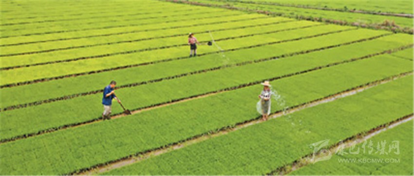 近年來(lái),安徽省滁州市全椒縣六鎮(zhèn)鎮(zhèn)通過(guò)“合作社+農(nóng)戶”形式進(jìn)行規(guī)?;恚樗痉N植戶提供耕種、管護(hù)、收割、收購(gòu)等一條龍服務(wù),提高規(guī)?;б?,幫助農(nóng)民增收。圖為6月10日,六鎮(zhèn)鎮(zhèn)一家合作社的農(nóng)民在水稻秧苗田里進(jìn)行田間管理。