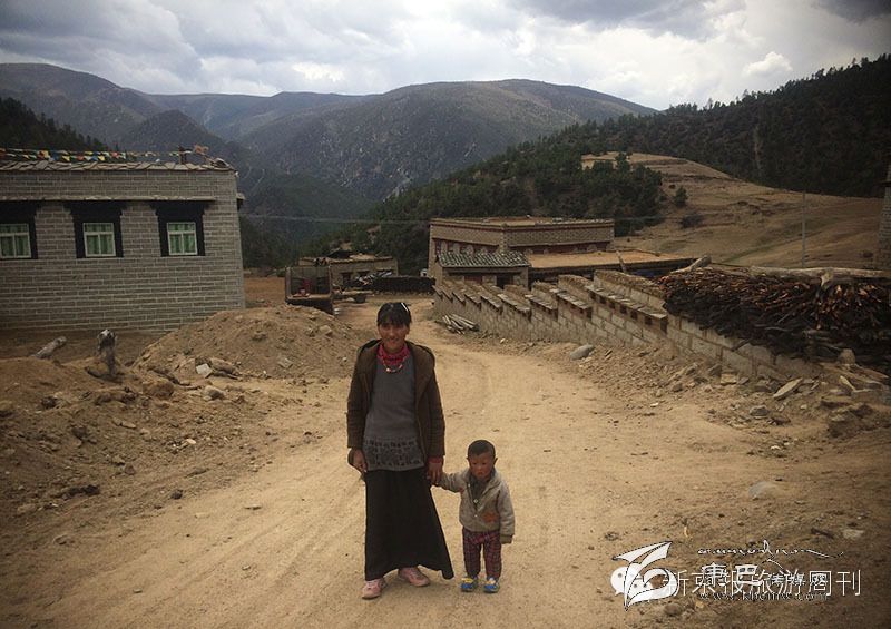 阿西村,帶著孩子的藏族女子送別客人。(攝影 陳杰)