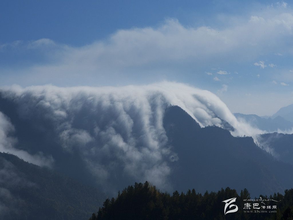牛背山最為變幻無(wú)窮的,當(dāng)屬云海。從山頂向下望去,四周云海茫茫,時(shí)而舒緩,時(shí)而洶涌,潮起潮落。當(dāng)云海移至深谷處,會(huì)因?yàn)榫薮蟮穆洳疃纬善俨荚?,似飛瀑?gòu)奶於?,氣?shì)磅礴,蔚為壯觀(guān)。“寵辱不驚,閑看庭前花開(kāi)花落;去留無(wú)意,漫隨天外云卷云舒”。云卷云舒的景象,大概只有在牛背山才能被演繹得如此淋漓盡致吧。難怪有人這樣描述牛背山:“泥巴山、瓦屋山、峨眉山、夾金山、四姑娘山和二郎山在前, 貢嘎雪山在側(cè), 大渡河大峽谷在后, 幾乎天府之國(guó)的所有名山峻嶺在此時(shí)都變成了玲瓏盆景。而翻滾的云霧之下, 群山丘陵逐級(jí)降低, 緩緩融入稻浪翻滾的天府平原。”