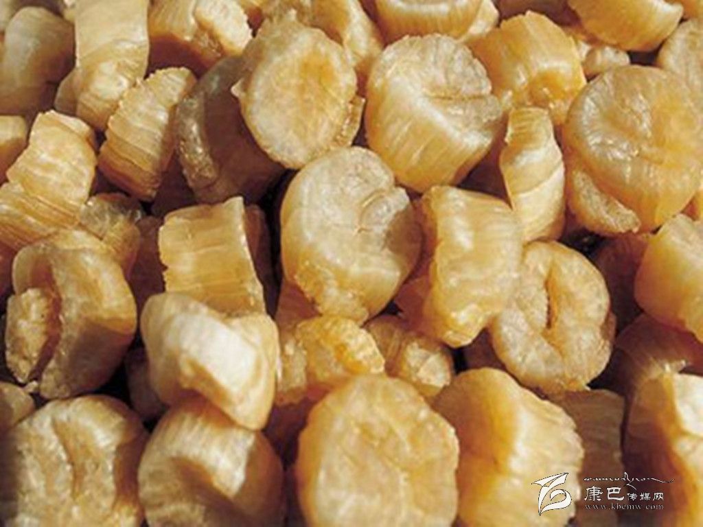 ●干貝。以色澤杏黃或淡黃、表面有白霜、顆粒整齊、肉柱較大堅實飽滿、肉絲清晰,有特殊香氣,味鮮、夠平、淡口的為上等貨;而肉柱較小,色澤深暗或是黃黑色者質(zhì)量差。