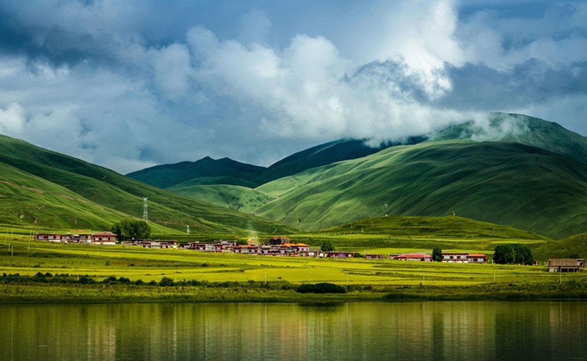 如果當(dāng)天天氣非常好,信步走向湖邊,潮濕清新的空氣撲面而來(lái)。白云掛在半空忽忽悠悠飄來(lái)飄去最終匯集在馬日岡神山之巔,湖邊的坡地上光影快速游動(dòng),讓人不禁心生疑竇——此處就是天堂。