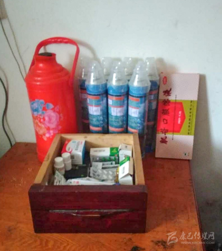 貢布卡公路養(yǎng)護管理站為游客準(zhǔn)備的開水、氧氣瓶及藥品。