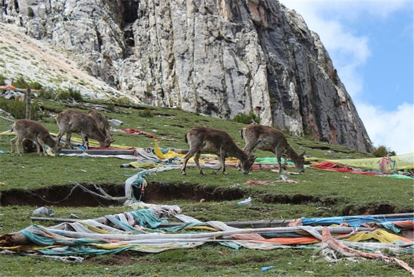 森林中成群結(jié)隊的盤羊是扎嘎神山的一道風景,這里的盤羊遇人不驚,特別是與寺廟的僧人和睦共處,如果你前往扎嘎神山游玩還可看見盤羊在僧人手掌上舔食的動人情景。