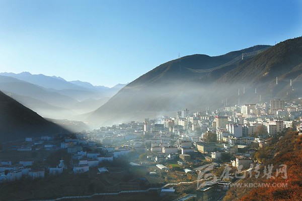 冬日晨曦中的鄉(xiāng)城縣城。