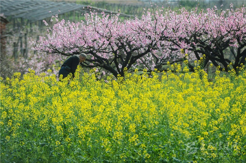 春天的杵坭鄉(xiāng)是濃墨重彩的,舉目四望,金黃燦爛的油菜花、潔白如雪的梨花和灼灼其華的桃花,鋪開了一大片一大片的色塊。