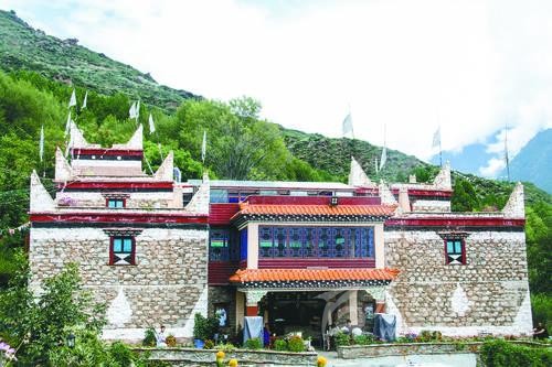 記者在“安卡兒民族莊園”看到,每天游客絡(luò)繹不絕,游客們不肯錯(cuò)過的是這里的鄉(xiāng)愁。眼前的“安卡兒民族莊園”是一座藏式三層小樓,以嘉絨民居為主格調(diào)。從外觀看,這棟三層小樓與村里其他農(nóng)家小院沒有多少差異,但仔細(xì)端詳,其所有窗戶大小、高低不一,透出與眾不同的設(shè)計(jì)風(fēng)格。走進(jìn)院內(nèi),這座藏式小樓的走廊外側(cè)裝著木欄桿,欄桿下面掛著藍(lán)綠相間的布條,以及大院中央郁郁蒼蒼的盆景,讓人美不勝收。
