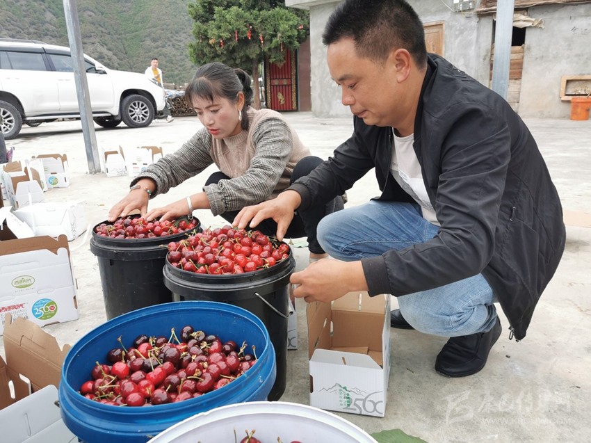 五月的大渡河沿岸鮮花怒放、瓜果飄香,黃橙橙的枇杷,紅彤彤的櫻桃沉甸甸地掛滿(mǎn)枝頭。近日,“鄉(xiāng)村振興·櫻你而美”康定市甜櫻桃采摘品鑒現(xiàn)場(chǎng)會(huì)在該市姑咱鎮(zhèn)莊上村舉行。拉賓斯、布魯克斯、美早、早紅珠、晚紅珠、紅燈、明珠等10多個(gè)品種大櫻桃均已成熟,各路客商紛紛與村合作社對(duì)接訂貨。