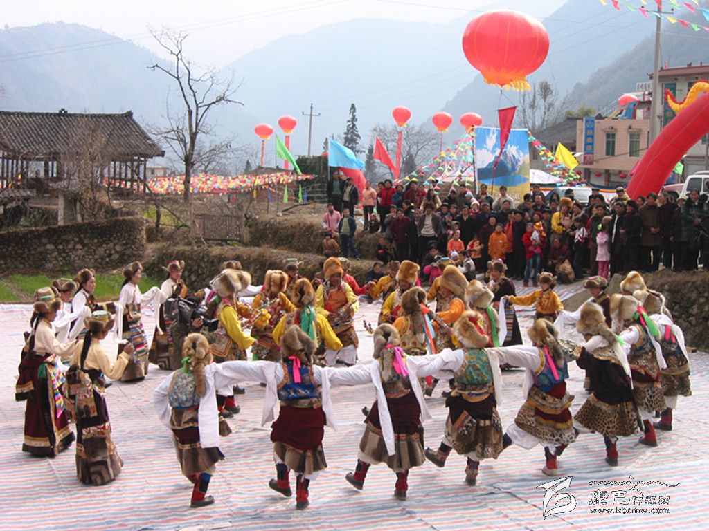 從初二開始,親朋好友才相互拜賀,共慶新年。圍跳鍋莊,“鍋莊”——藏族的民間舞蹈。在節(jié)日或農(nóng)閑時(shí)跳,男女圍成圓圈,自右而左,邊歌邊舞。“果桌”——鍋莊舞,早期與西藏奴隸社會(huì)和盟誓活動(dòng)有關(guān),后來逐步演變成為歌舞結(jié)合,載歌載舞的圓圈歌舞形式了?!肚迨犯?middot;樂志》音譯為“郭莊”,近代有稱“歌莊”,唯《衛(wèi)藏通志》說它是圍著支鍋石樁而舞的意思?!段鞑匚璧父耪f》載:以前的康定一帶,有一種商業(yè)性組織叫“鍋莊”,這類商行收購(gòu)?fù)廉a(chǎn),代辦轉(zhuǎn)運(yùn)設(shè)有客棧,沿途過往的藏族商賈常聚集宿居其中。晚上,在院內(nèi)曠地壘石支鍋熬茶抓糌粑,茶余飯后不時(shí)圍著火塘歌唱跳舞,以驅(qū)一天的勞累與疲乏,保持旺盛的精力,適應(yīng)惡劣環(huán)境。