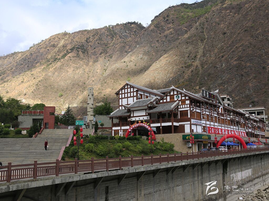 在另一個地方,影片開始部分紅軍飛奪瀘定橋情節(jié)的所在地瀘定縣縣城正是一派熱鬧的氣氛:再過十多天,春節(jié)將至,人們在廣場上悠閑的曬著太陽、玩紙牌,孩子們在父母的身邊奔跑嬉戲。到了晚上,漢、藏、彝各族群眾聚集在一起,手拉手,圍成一個圓,開始跳舞。