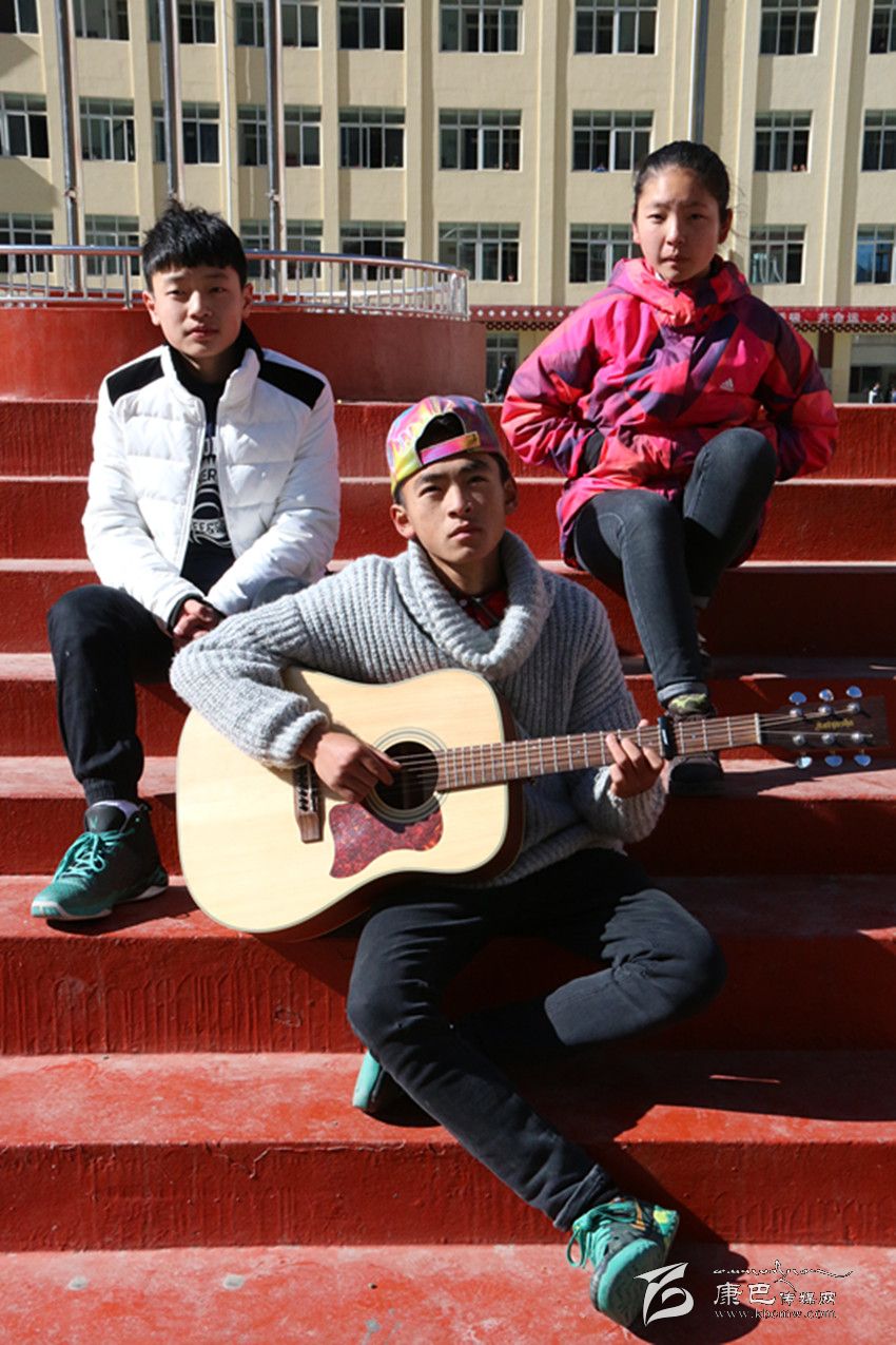 “白云下一座溜溜的城/聽(tīng)著溜溜的歌聲/李家那溜溜的大姐喲/溜溜愛(ài)上藏家大哥喲/尋夢(mèng)在溜溜的跑馬山/我推著金桶溜溜轉(zhuǎn)/折多河溜溜穿城過(guò)喲/頌經(jīng)聲溜溜的傳承喲/悠揚(yáng)琴聲在溜溜小城/我溜溜等待著愛(ài)人/跑馬山龍打溜溜撒喲/心就在溜溜城中活……”最近一首名叫《溜溜》的歌曲刷爆了記者的朋友圈,不到一天的時(shí)間點(diǎn)擊率達(dá)到12000多,干凈的嗓音碰上吉他、貝斯等流行元素,給聽(tīng)眾帶了一種不同的音樂(lè)享受?!读锪铩返脑~曲作者周麒(當(dāng)然他也是原唱之一)和主唱昂汪央金拉姆、周楠都是來(lái)自康定中學(xué)的學(xué)生,在冬日的午后,記者在康定中學(xué)的籃球場(chǎng)見(jiàn)到了這三位一臉天真的原創(chuàng)者。初見(jiàn)記者,他們還有一些靦腆、緊張,但是一談到音樂(lè),他們立刻有了說(shuō)不完的話(huà)。