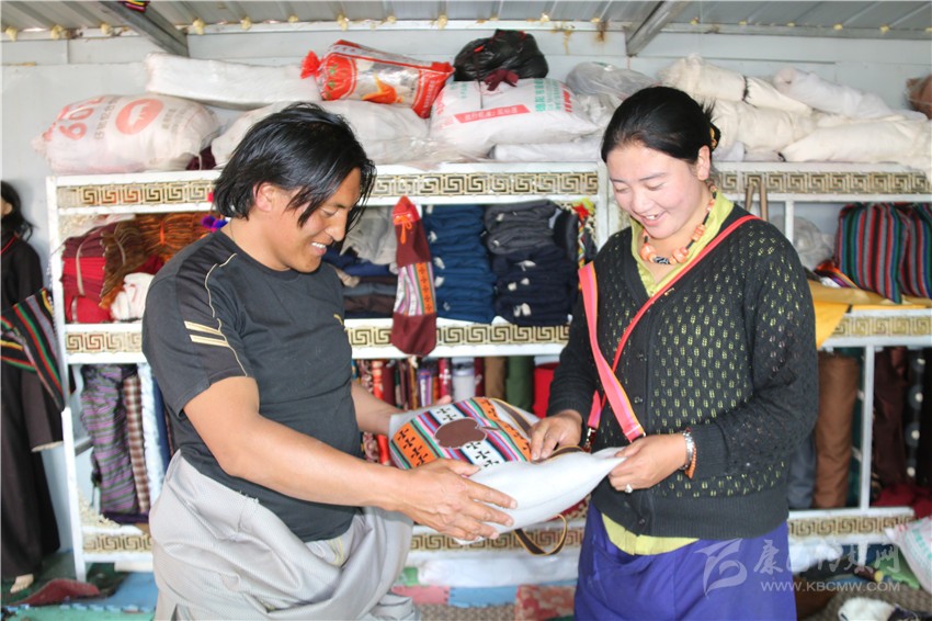 安孜鄉(xiāng)作為白玉縣海拔較高的鄉(xiāng)鎮(zhèn)之一,夏天是十分短暫的,連日來的晴好天氣,也透著絲絲寒氣。牧民阿剛想要量身定做一套過冬的藏裝,9月13日,他來到白玉縣阿察鎮(zhèn),一家民族服飾商貿(mào)公司吸引了他的目光?!拔覀冞@里的服裝面料是本地羊毛和從浙江進的上等面料,做工考究,很多工序是純手工制作,服裝樣式你可以根據(jù)你的喜好指定,我們包你滿意。”店員仁真熱情地介紹。聽了仁真的介紹,阿剛用手捻了一下服裝用料的質(zhì)地,看到印有“祥陽措”商標的精美包裝袋,商店里擺放的五彩斑斕、高端大氣的藏式男女服裝,他有些動心了。“生產(chǎn)這些服裝的都是我們納塔鄉(xiāng)的牧民,你可以考察我們的服裝用料、生產(chǎn)流程,再作打算。”仁真熱情洋溢地介紹說。